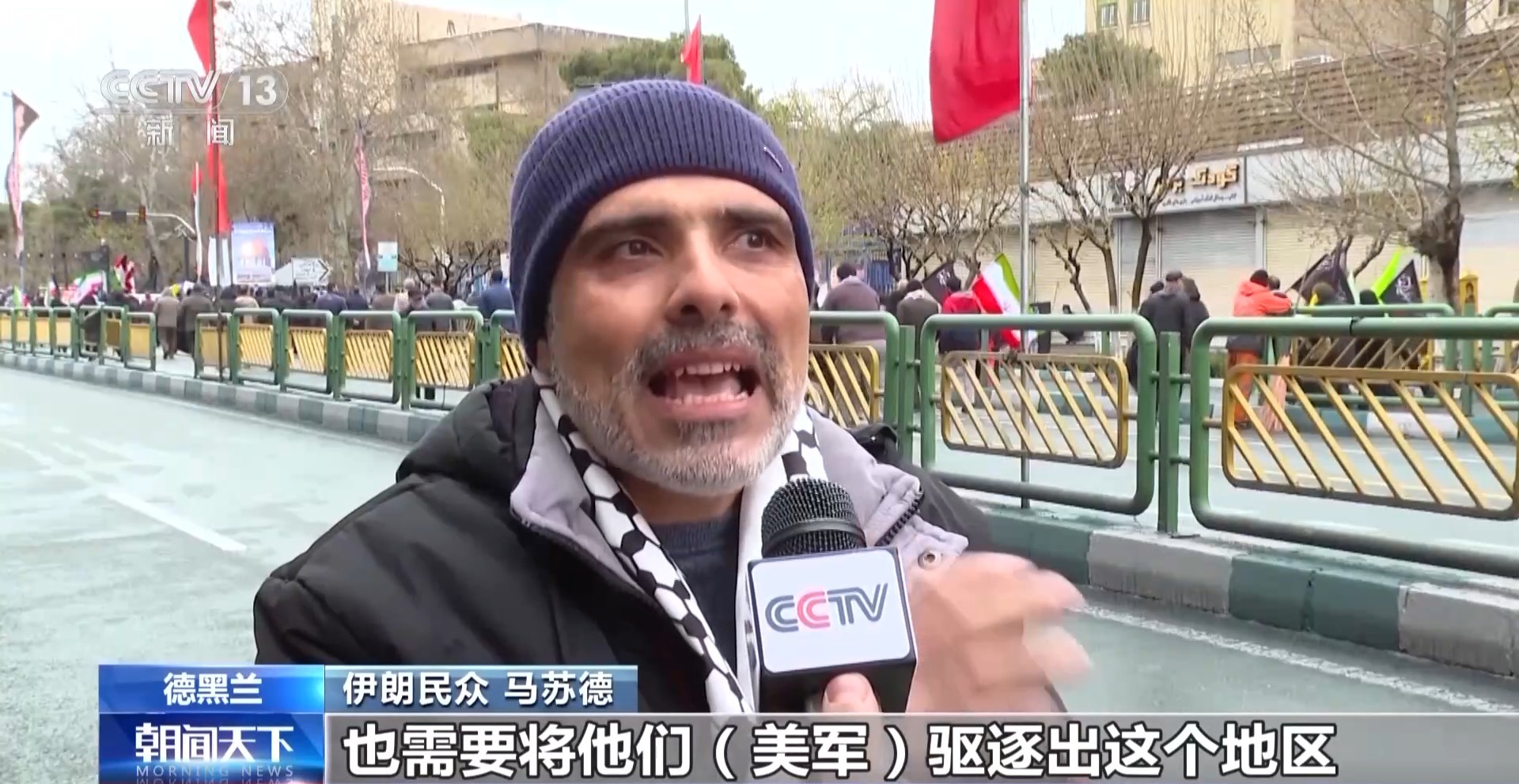 伊朗民众 马苏德:我们既要严厉地报复,也需要将他们(美军)驱逐出这个地区,这意味着必须清除该地区的(美军)。